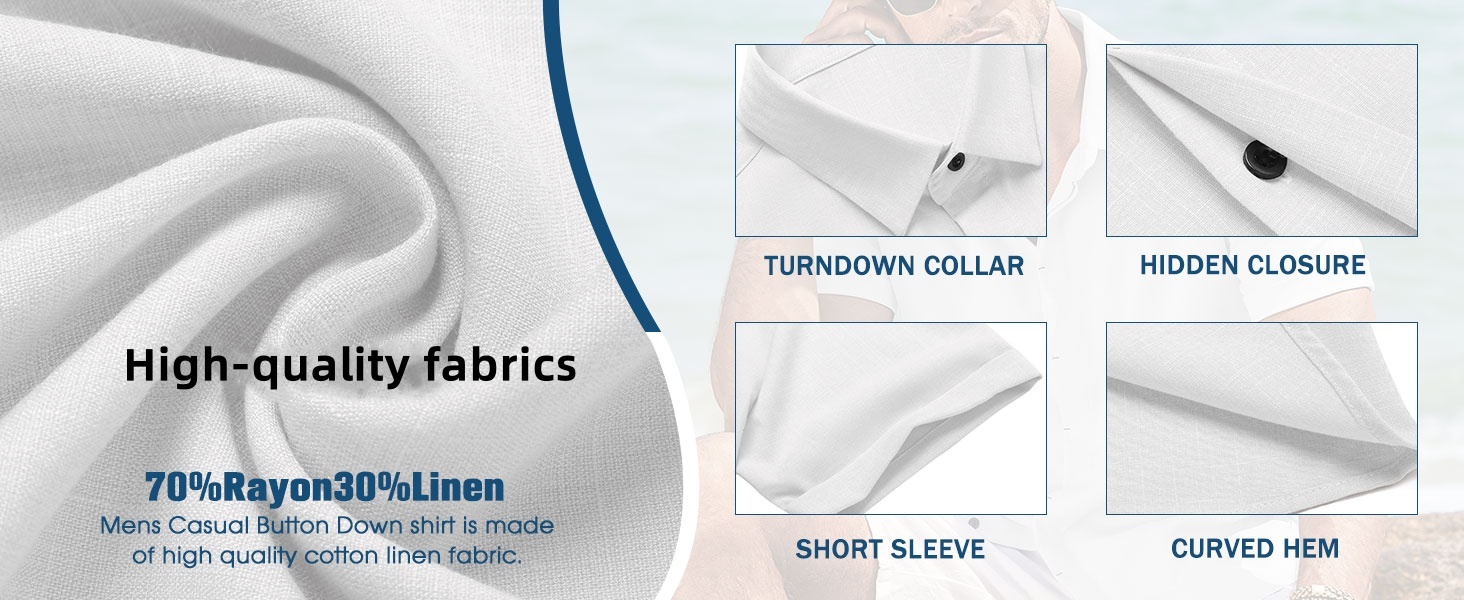 Men's casual button-down shirt is made of high-quality cotton and linen fabric. Breathable, lightweight, skin-friendly, and anti-shrink, making you feel cool and comfortable all day long