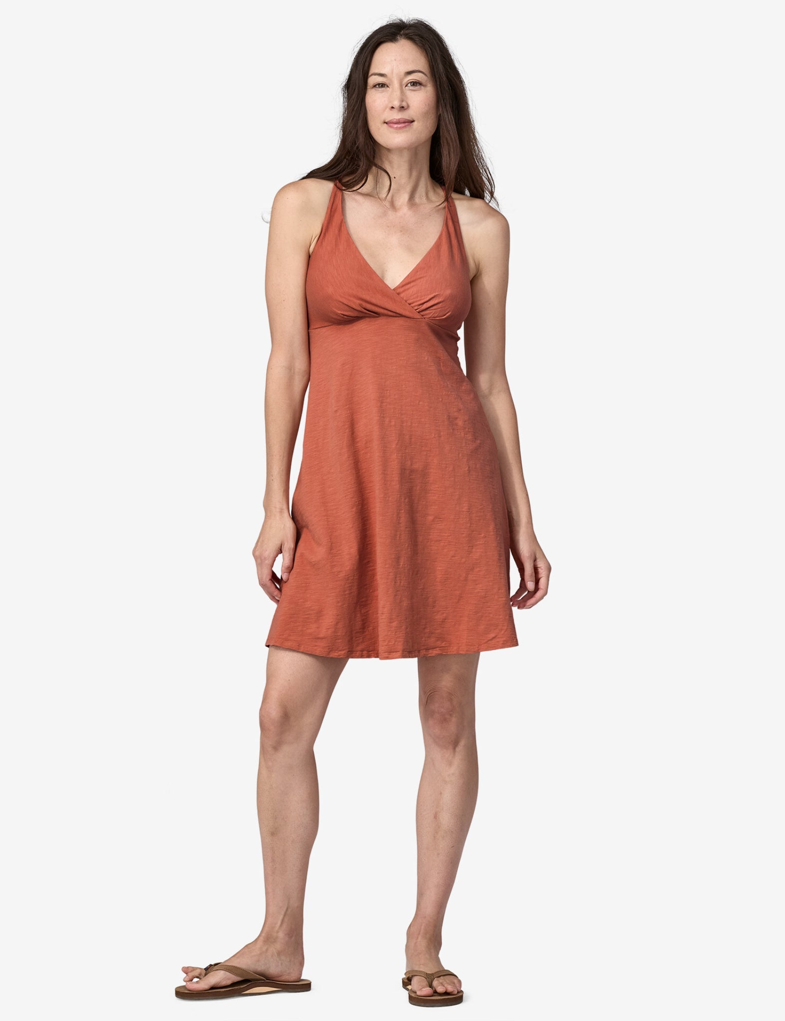 Introducing the Amber Dawn Dress from in sienna clay. Made in a stretchy 96% organic cotton fabric, and easy-care 4% spandex slub-knit jersey make it a must-have. The V-front detail adds a flattering touch and the knee length is just right. Plus, it's made in a Fair Trade Certified factory.